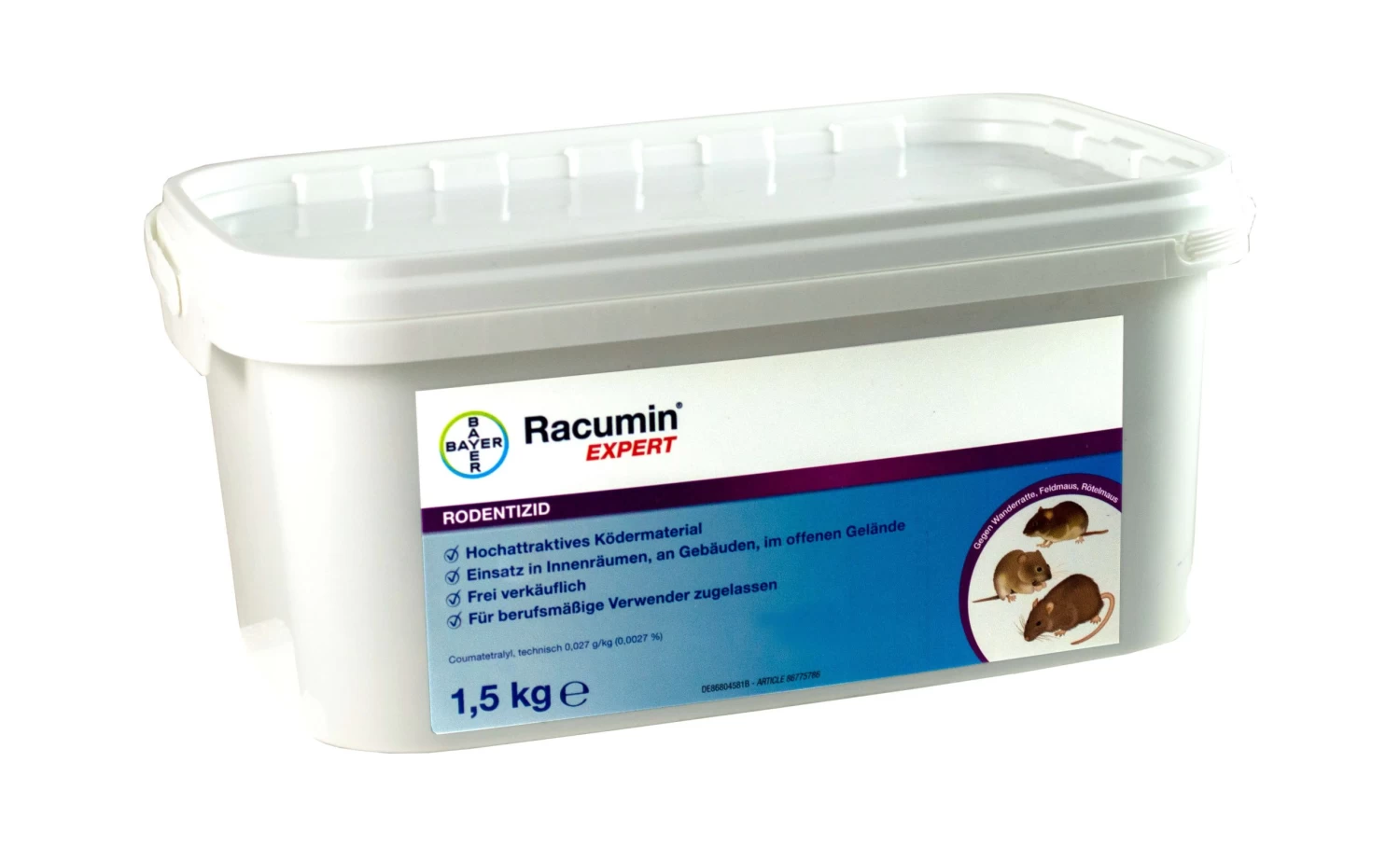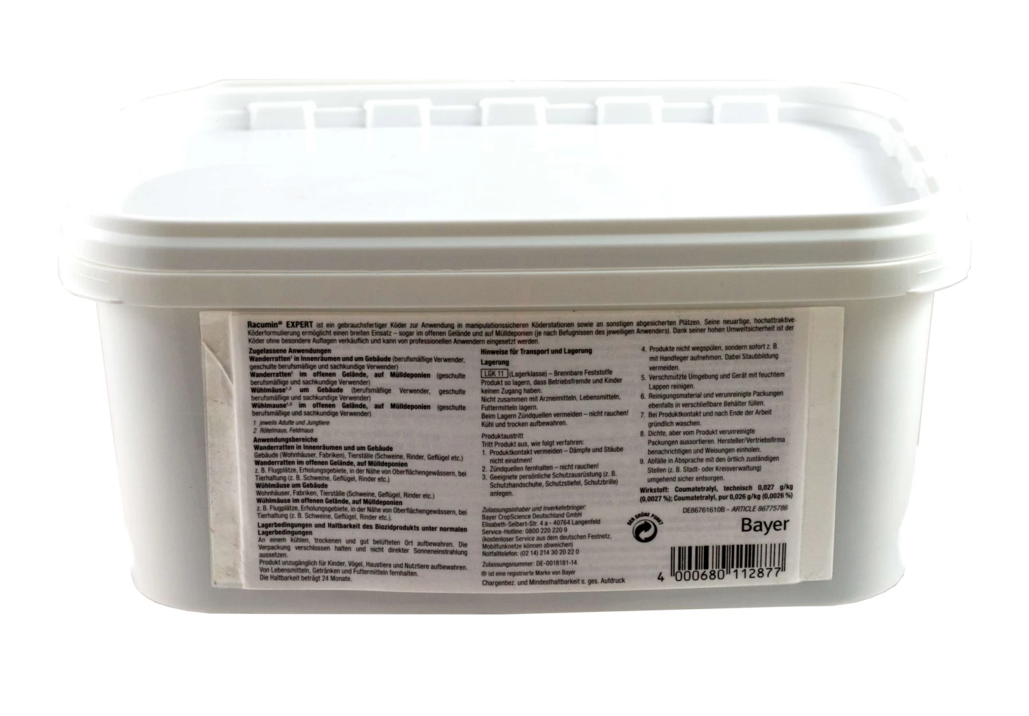 Racumin Expert ist ein gebrauchsfertiger Köder zur Anwendung in manipulationssicheren Köderstationen sowie an sonstigen abgesicherten Plätzen. Seine neuartige, hochattraktive Köderformulierung ermöglicht einen breiten EInsatz – sogar im offenen Gelände und auf Mülldeponien (je nach Befugnissen des jeweiligen Anwenders). Dank seiner hohen Umweltsicherheit ist der Köder ohne besondere Auflagen verkäuflich und kann von profesionellen Anwendern eingesetzt werden.