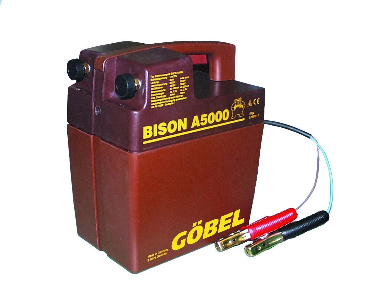 Das Bison A 5000 Batteriegerät von Göbel kann mit 2 verschiedenen Leistungsstufen (9 und 12 Volt) eingesetzt werden. Bei hoher Leistung ist das Gerät ideal für den Einsatz auf großen Pferdekoppeln und Portionsweiden, sowie zur Wildabwehr. Bei niedriger Leistung ist es perfekt geeignet für den Hof und Garten und zur Unterteilung von Pferdekoppeln. Der Stromverbrauch ist extrem niedrig, die Einsatzmöglichkeiten vielseitig und der Preis unschlagbar. Die Batterie ist im Lieferumfang nicht enthalten.