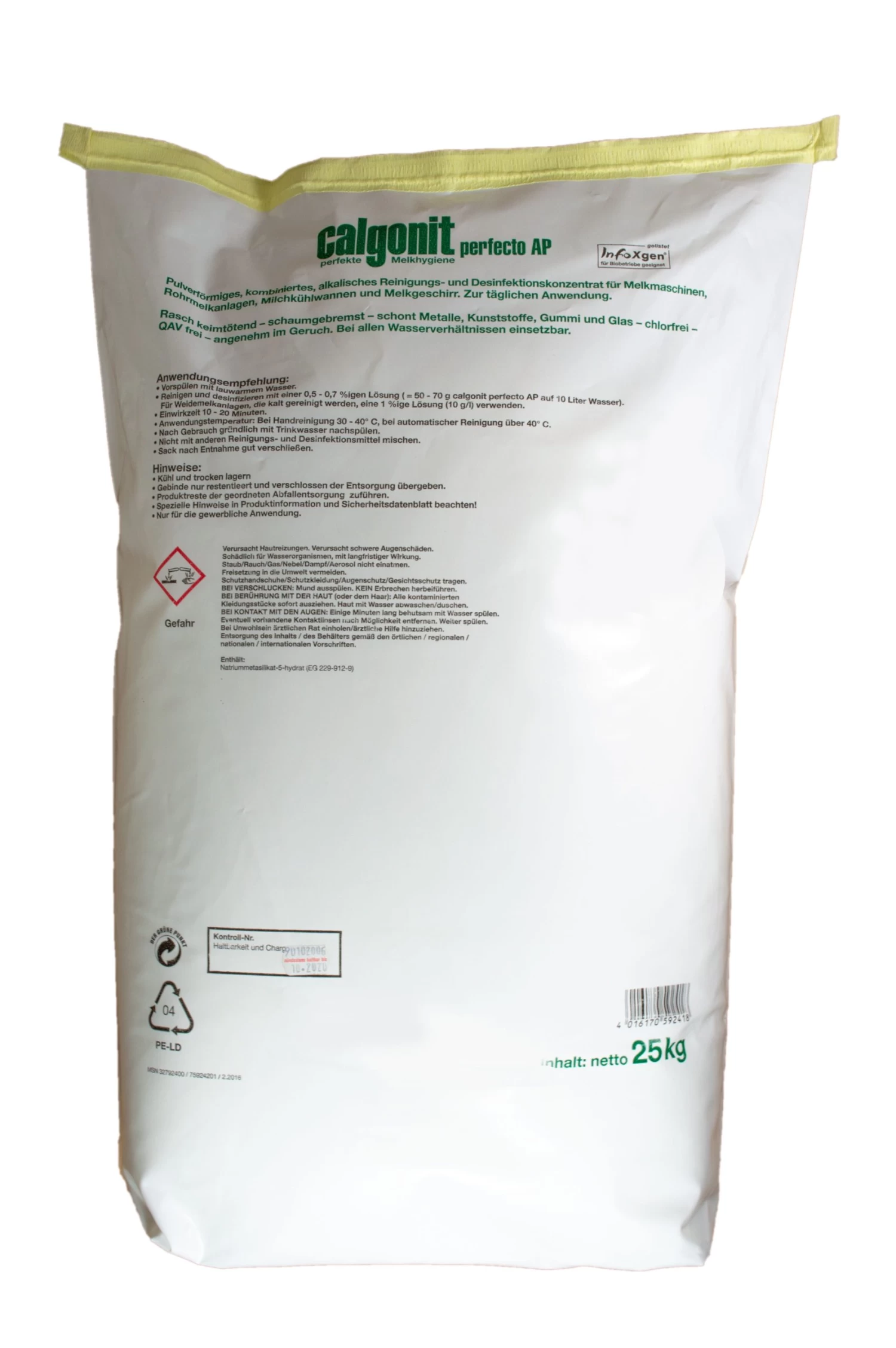 Konzentrat zur Reinigung und Desinfektion von Melkanlagen, Milchgeschirr, Milchkühltanks und Sammelbehältern etc – calgonit perfecto AP emulgiert und entfernt zuverlässig Milchfett und Milcheiweiß