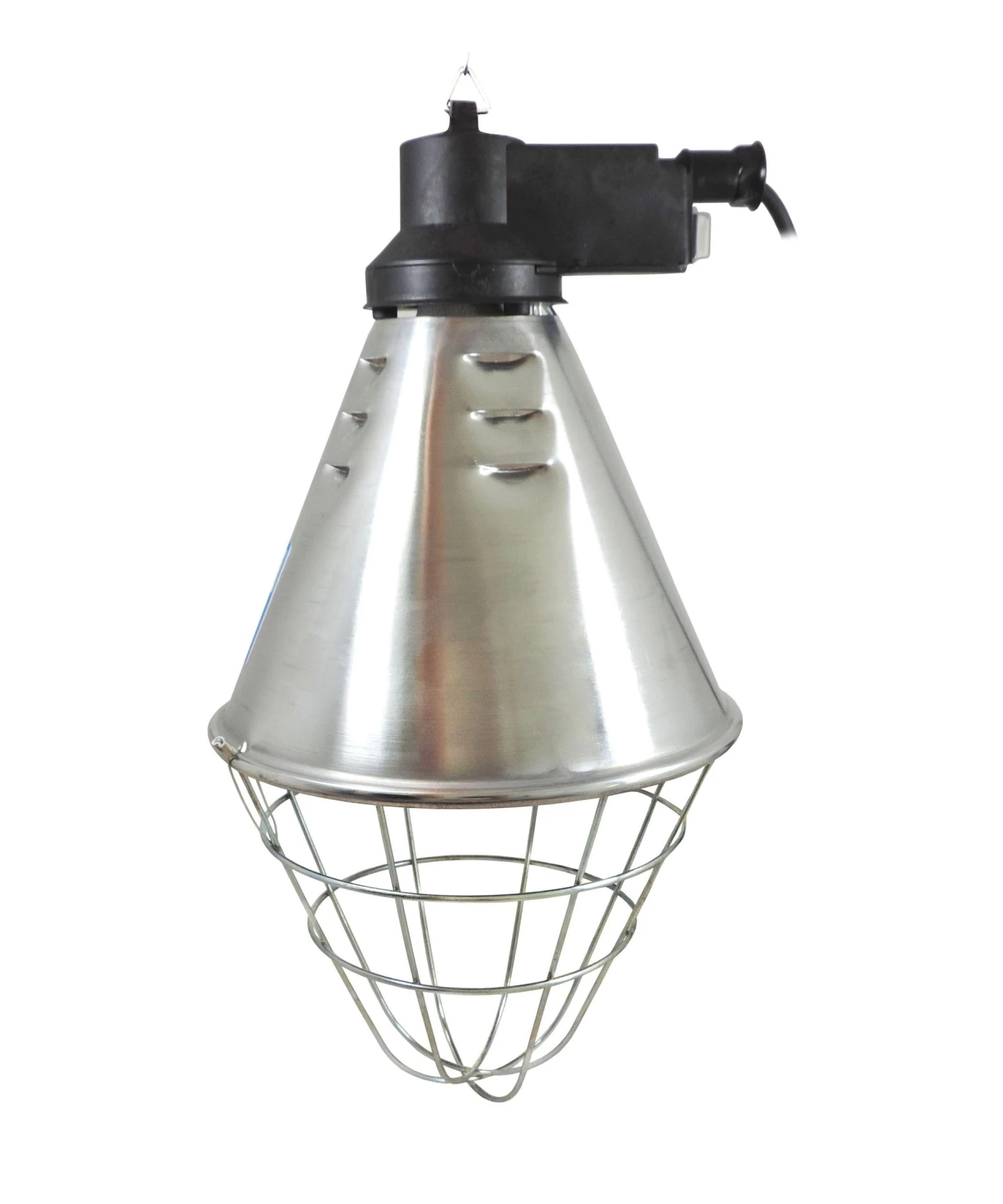 Der Wärmestrahler von Eider, ausgestattet mit einem Schutzkorb und 5m Kabel, ist ein effektives Produkt um (Jung)Tieren eine gezielte und breite Wärmequelle zu liefern.
