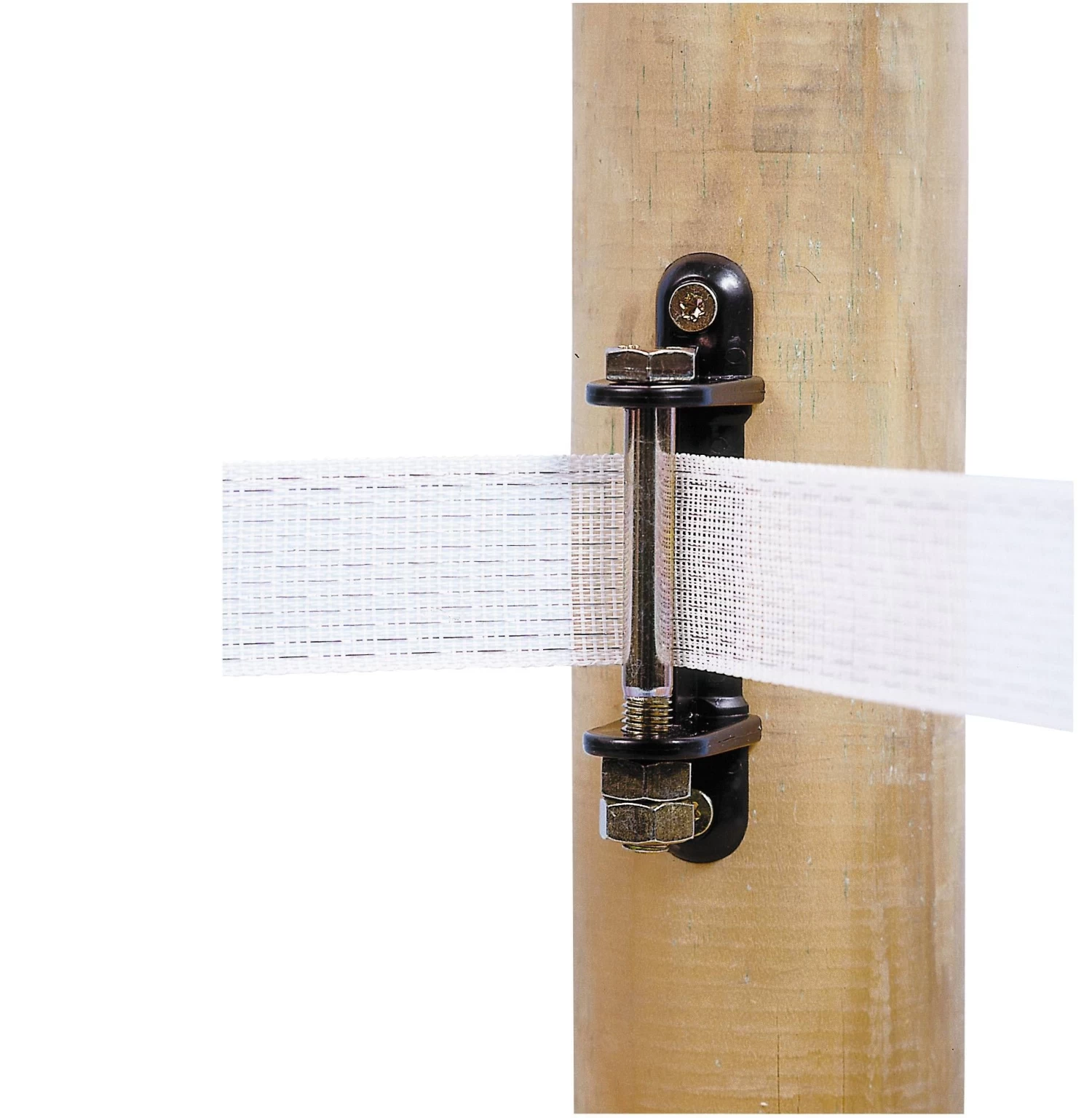 Der Eckisolator von Kerbl ist ideal geeignet für Breitbänder zwischen 40 bis 60 mm. Er kann angeschraubt oder genagelt werden und richtet den Zaun mit Hilfe des Eckisolators in verschiedene Abzweigungen aus. Er wird in 10 Stück pro Paket geliefert und ist nicht für Bänder mit Kupferdrähten geeignet.