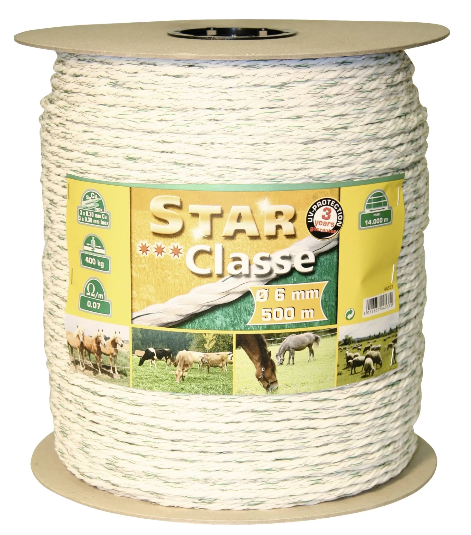 Die Kordellitze von Star hat eine Gesamtlänge von 500m und einen Durchmesser von 6mm. Sie ist mit 3 x 0,30 Niroleitern ausgestattet.