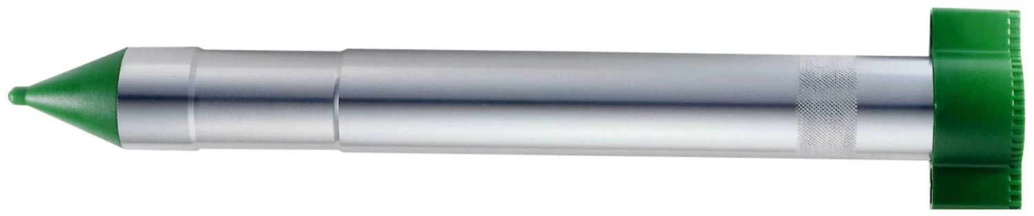 - ein vibrierender Klang im Inneren des Stabes in Intervallen bis zu 15 Sekunden wirkt auf das feinfühlige Gehör der Nager so empfindlich, dass diese nach kurzer Zeit den Wirkungsbereich des Wühlmausvertreibers verlassen