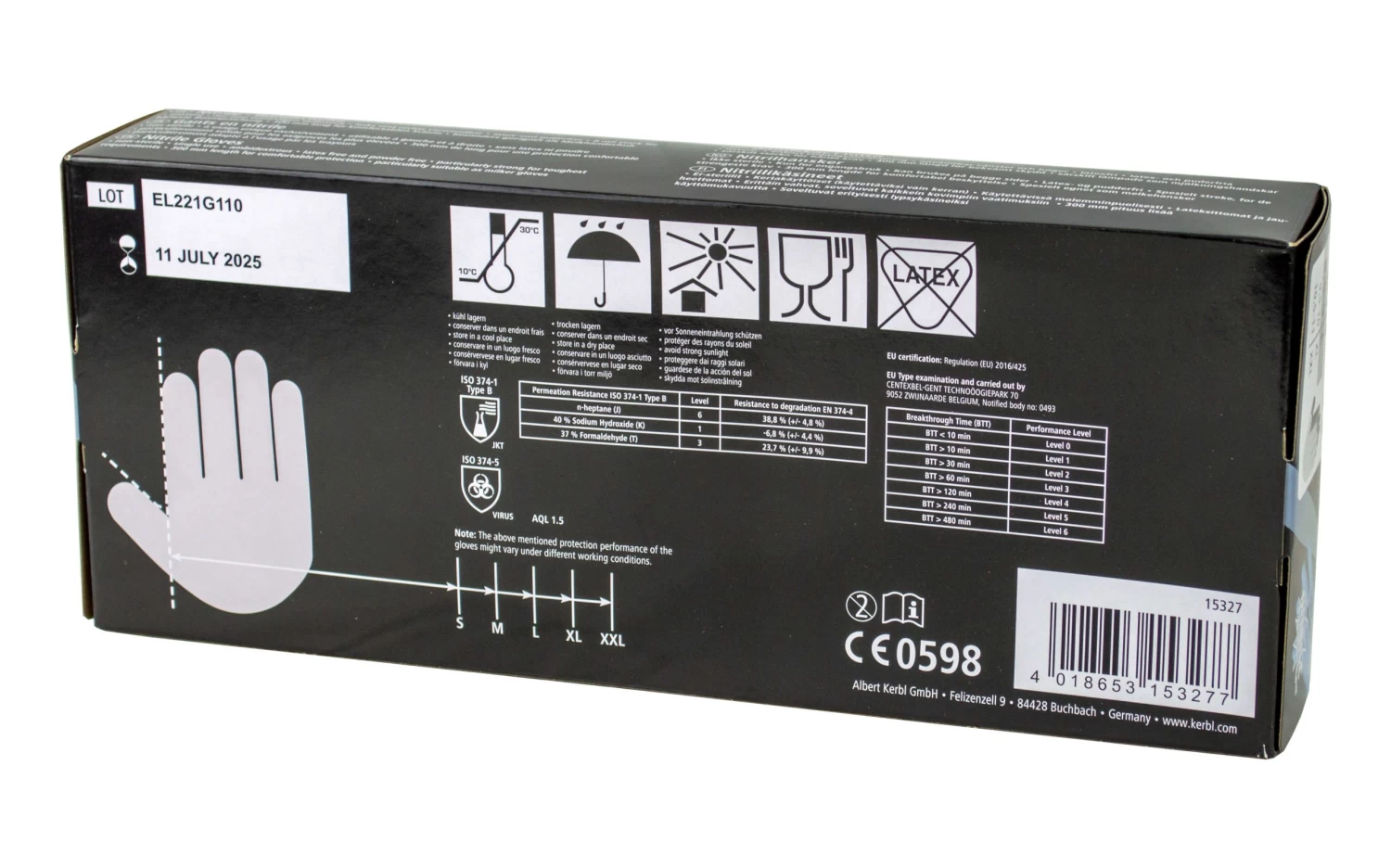 - EN374/1 geprüft (Schutz gegen Chemikalien & Mikroorganismen)