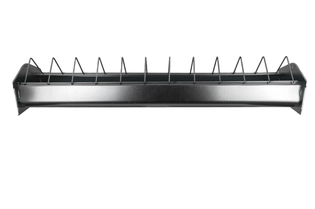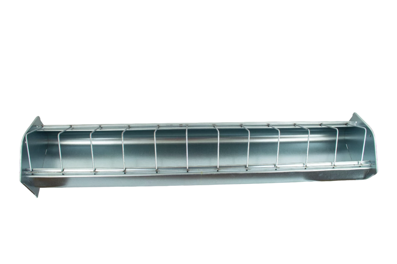 Verzinkter Legehennen Futtertrog von Göbel – 1 m mit aufklappbarem Fressgitter