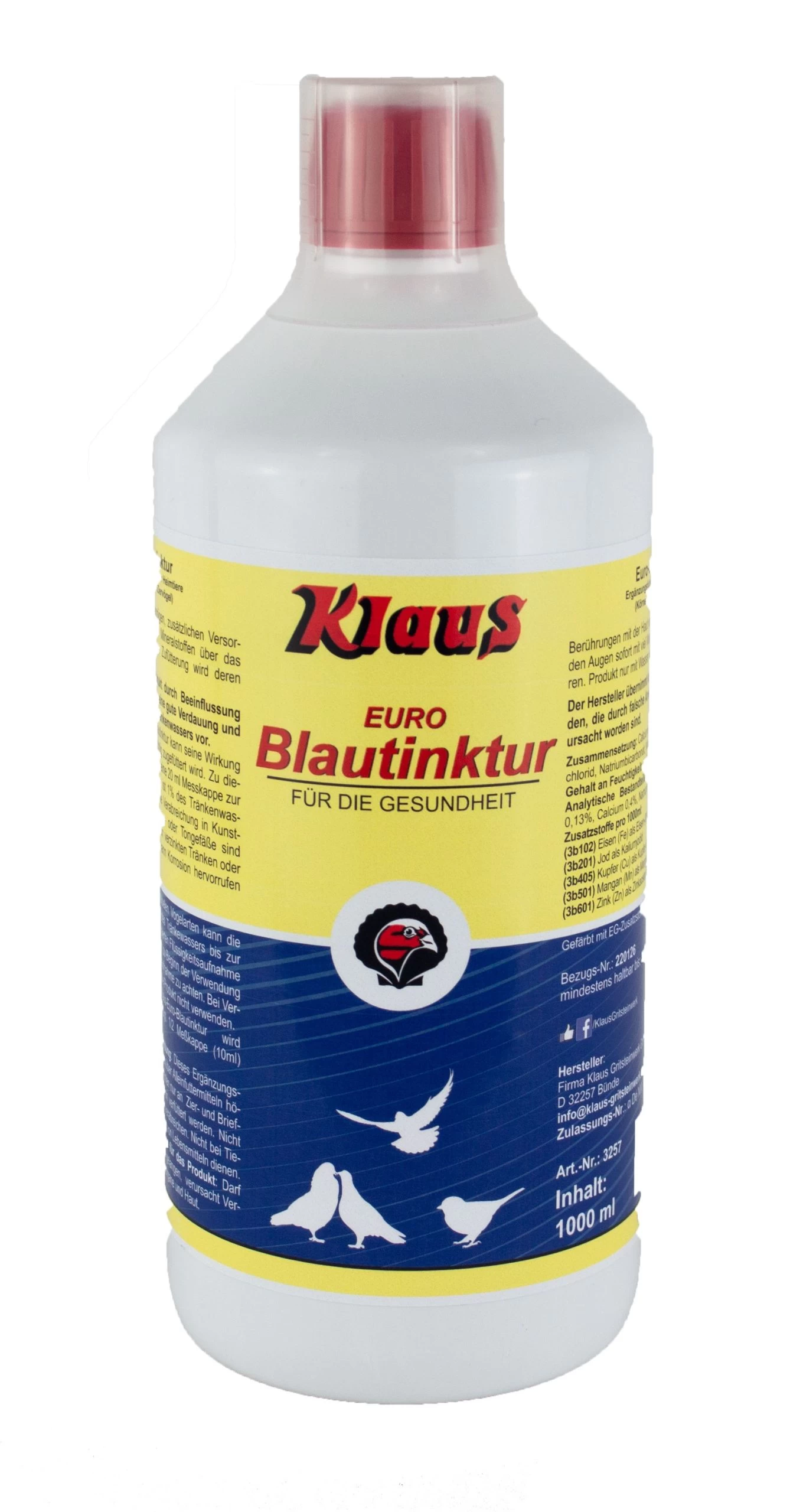 - Klaus Euro-Blautinktur ist für Hobbygeflügel, Brieftauben, Ziervögel, Kleinnager und andere Heimtiere geeignet.