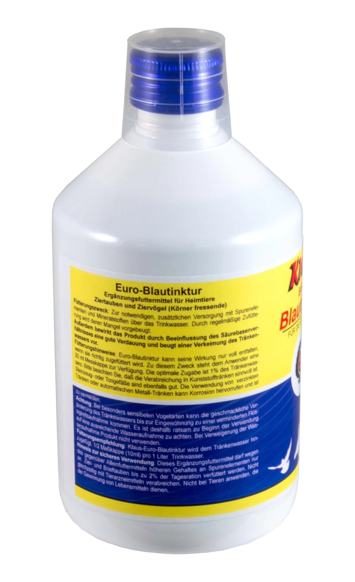- Klaus Euro-Blautinktur ist für Hobbygeflügel, Brieftauben, Ziervögel, Kleinnager und andere Heimtiere geeignet.