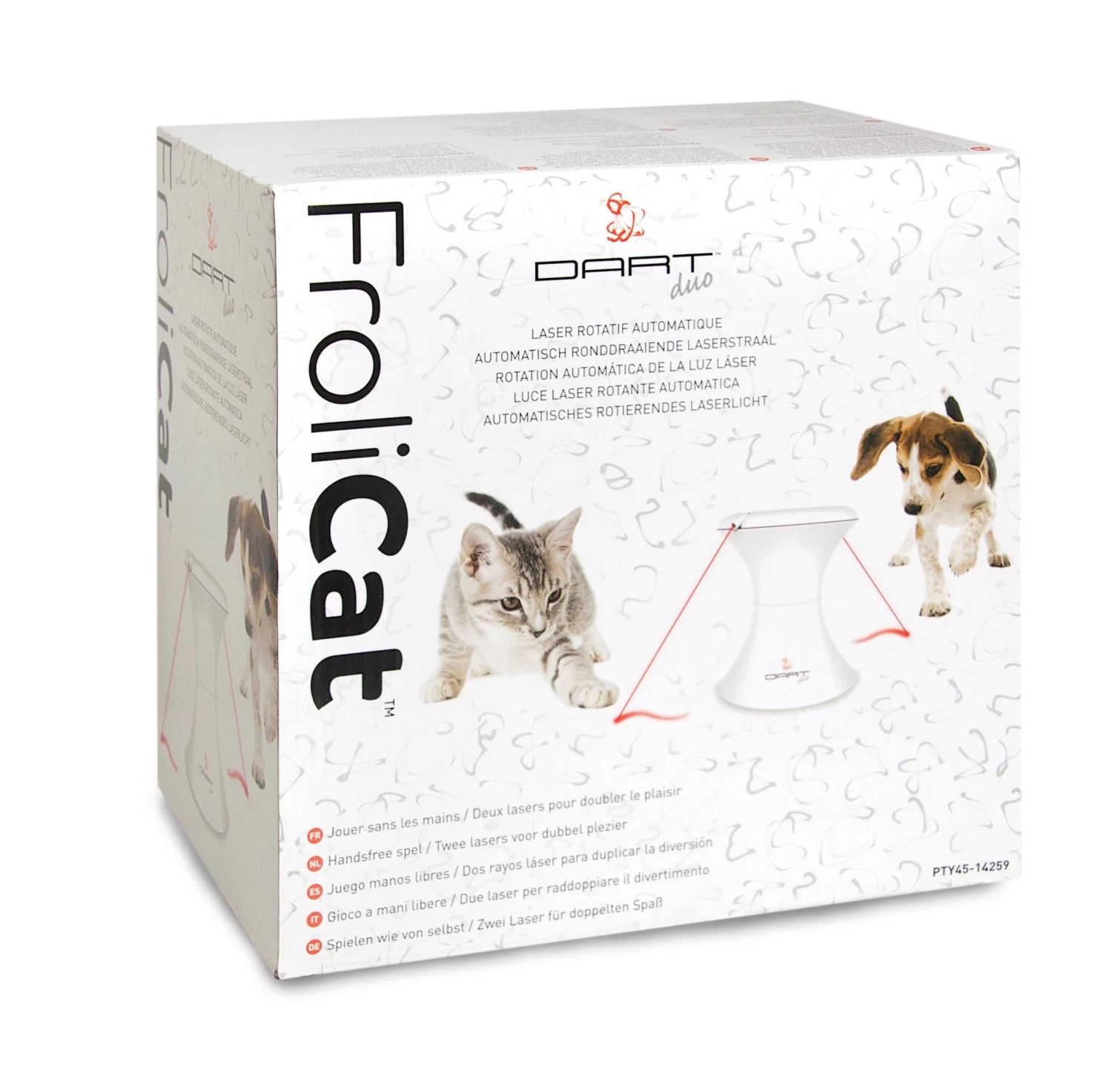 FroliCat DART DUO ist ein vollautomatisches Laserspielzeug mit zwei Laserlichtern, das mehreren Haustieren eine Herausforderung und damit doppelten Spielspaß bietet.