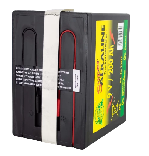 Die super Alkalische Trockenbatterie ist quecksilber- und kadmiumfrei. Am Ende der Leistungsdauer nimmt die Spannung bei alkalischen Weidezaunbatterien im Vergleich mit Zink/Kohle Weidebatterien wesentlich rapider ab.