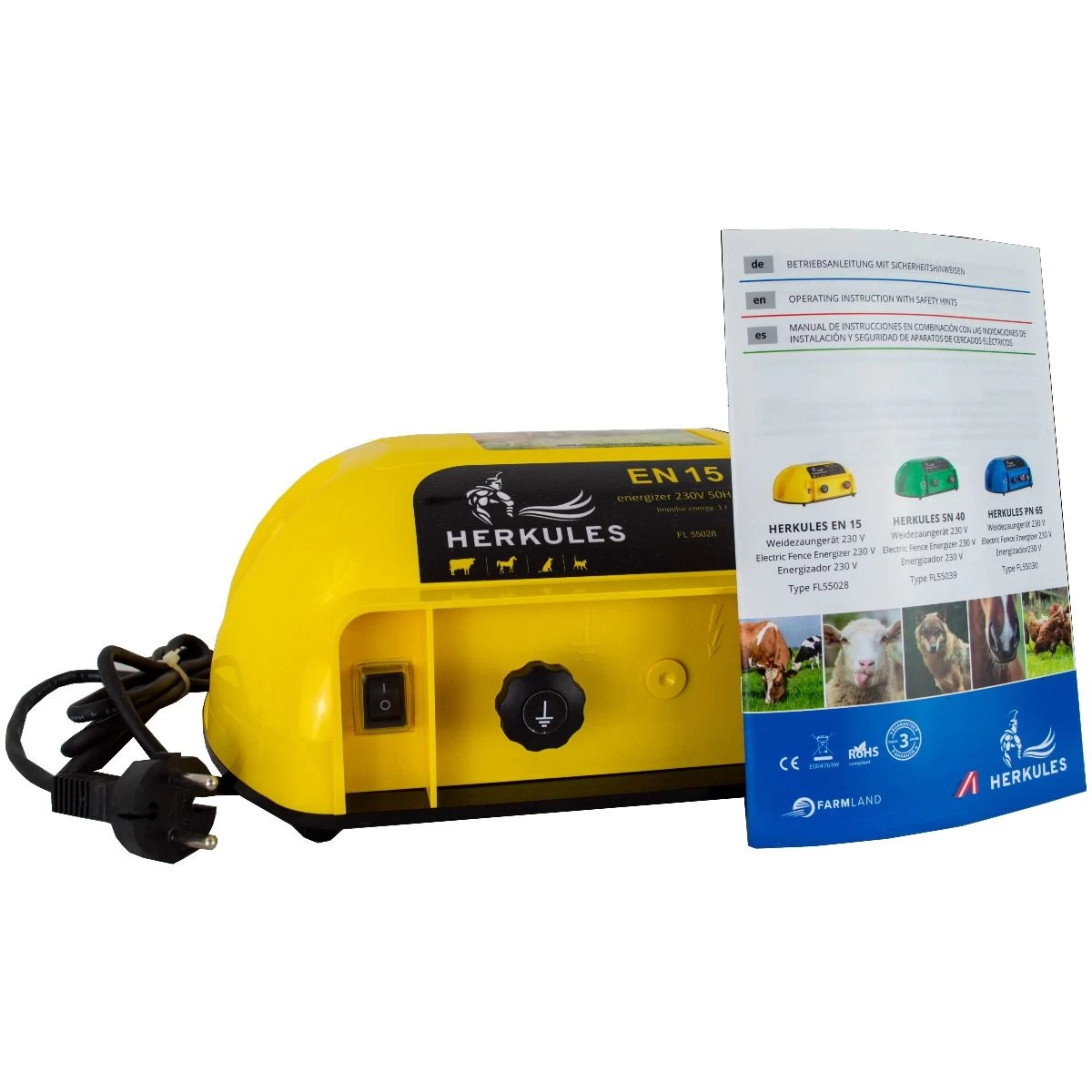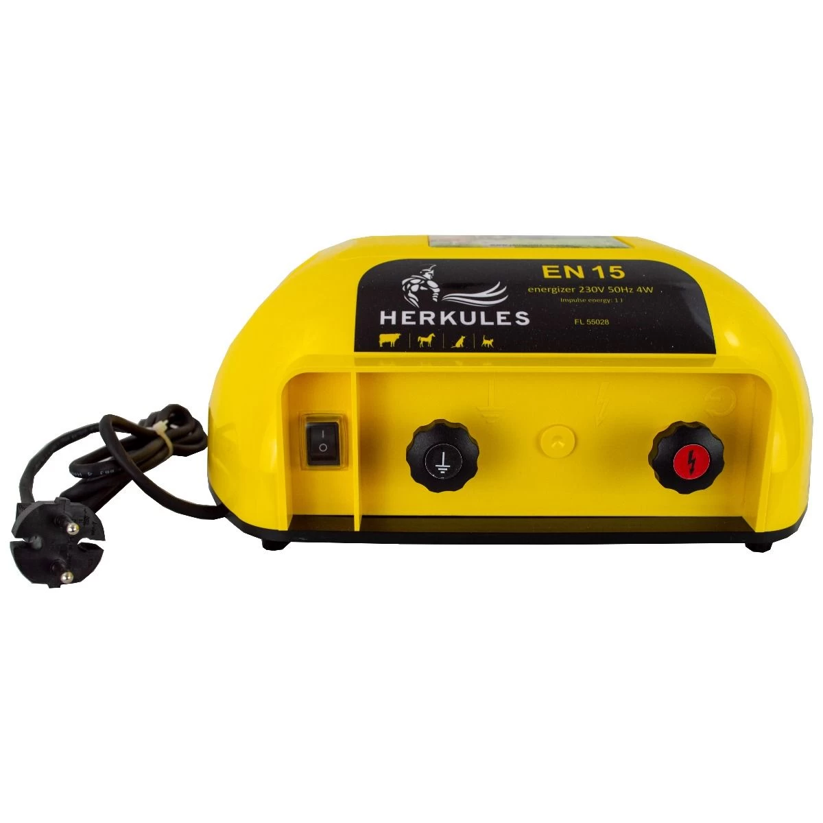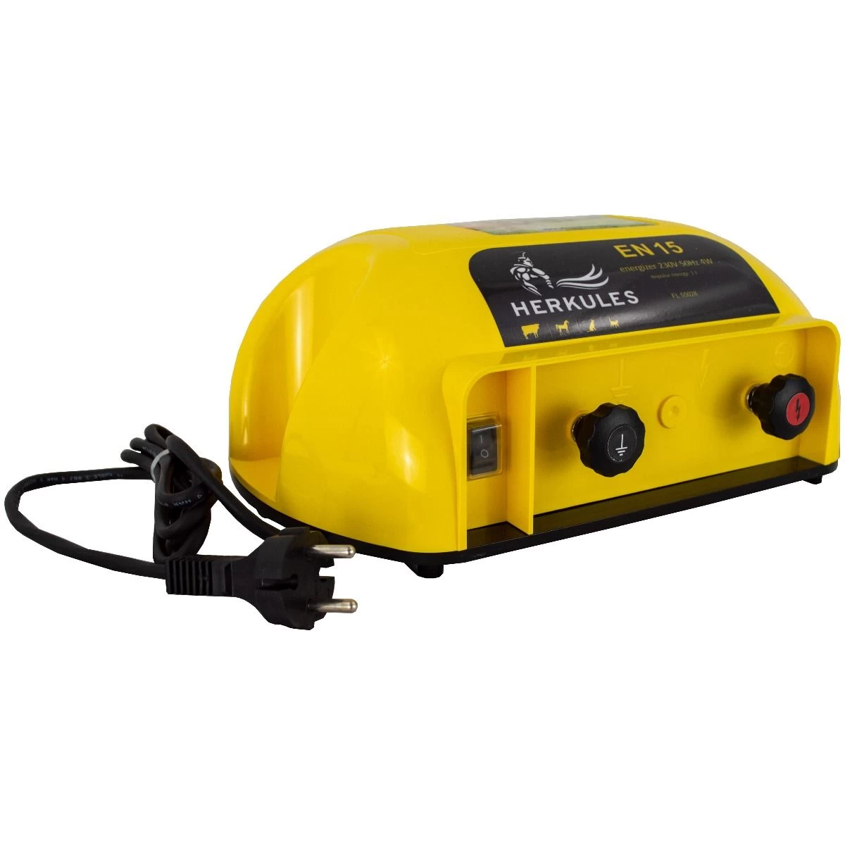 Das Weidezaungerät EN15 von Herkules ist ein leistungsstarkes Elektrozaungerät mit einer Leistung von 230 Volt. Es ist netzbetrieben und eignet sich für die Wandmontage und wird mit einem praktischen Ein- und Ausschalter, sowie mit einem LED-Display geliefert. Das massive und vor allem witterungsbeständige Gehäuse eignet sich ideal für kleine Weiden, Koppeln und kurze Zäune mit einer Maximallänge von 40.000 m.